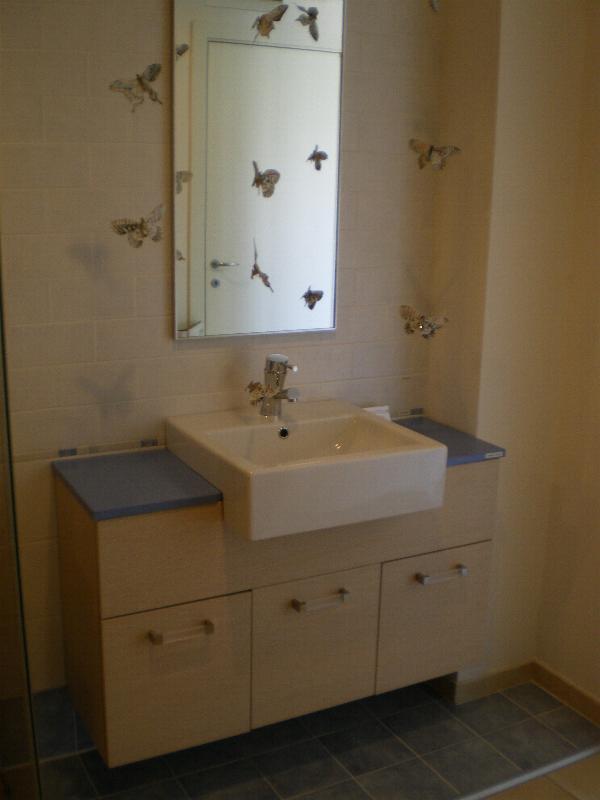 Mobile in wengè ( 70 x 50 ) con lavabo in Ekotec completo di base laterale ( 35 x 48 ). €. 1.100,00 |