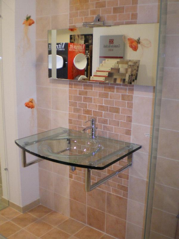 Lavello in cristallo ( 79 x 50/59 ) completo di specchio ( 40 x 100 ) con lampada. €. 900,00 |